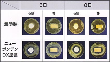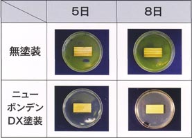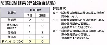 業界初の防藻材配合により、DXは藻の発生が見られにくい。(大阪塗料防藻試験結果による)