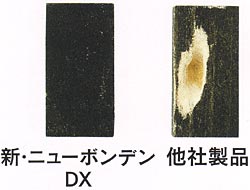 ニューボンデンDXは、新開発の特殊強力撥水剤の配合により、雨水、湿気等による木材への水分をシャッタアウトし、より長持ちさせることができます。